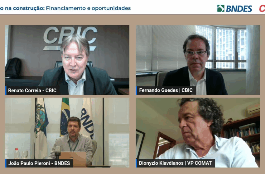 A Câmara Brasileira da Indústria da Construção (CBIC) e o Banco Nacional de Desenvolvimento Econômico e Social (BNDES) anunciaram a criação de um grupo de trabalho para desenvolver novas oportunidades de financiamento voltadas à inovação no setor da construção. A iniciativa surgiu como resultado do webinar “Inovação na construção: Financiamento e oportunidades”, realizado em 18 de setembro e transmitido pelo canal da CBIC no YouTube.